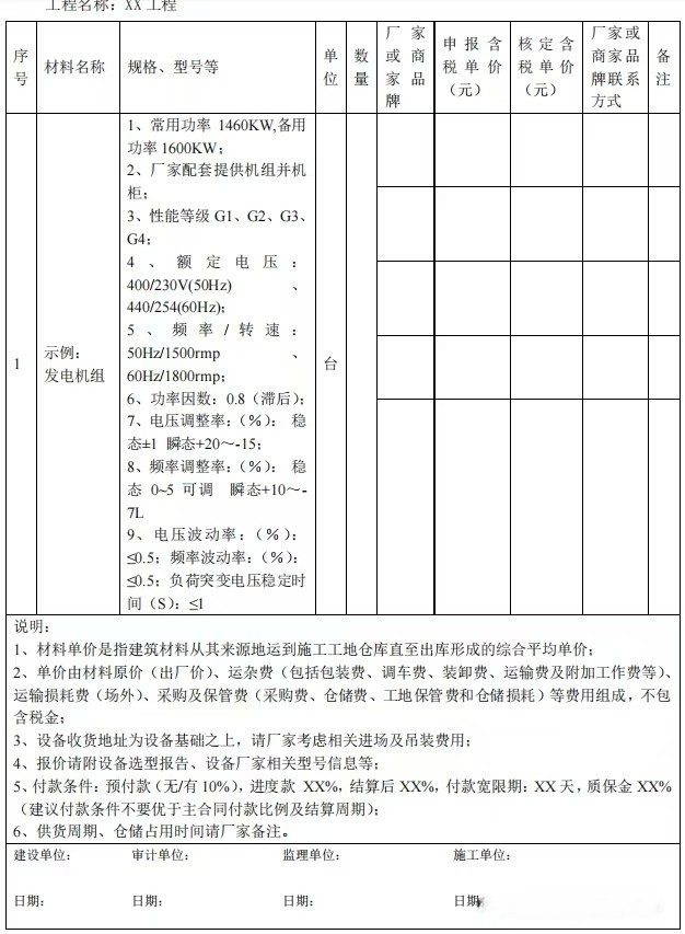 发电机组作为大型设备,造价高,技术要求复杂,设备招采周期长。发电机组询价注意事项: